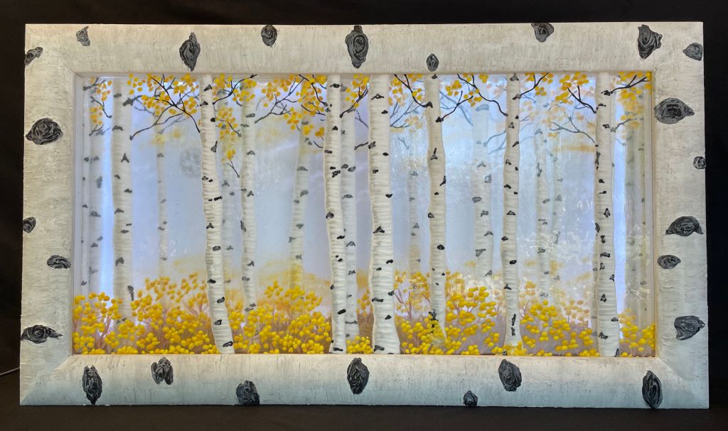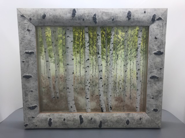 Composed on multiple layers, these pieces create and capture incredible depth and perspective. The viewer senses a feeling of participating in the scenes designed to encourage us to drop technology, go outside and experience the beauty of the world around us. Each piece comes to life as it interacts with natural light, changing with the shadows to create new moods and feelings.