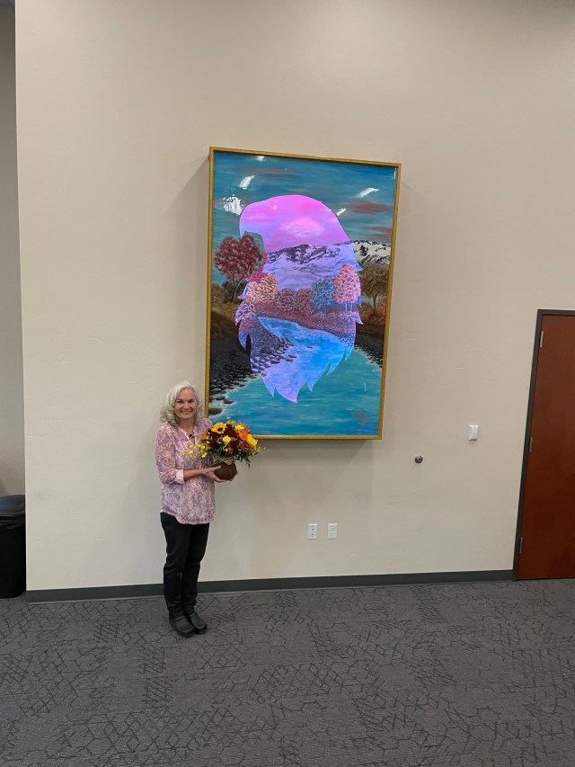 This piece was commissioned by the City of Eagle for the newly constructed Community Center. The artwork captures the beautiful setting of the city which is nestled between the Boise Foothills and the Boise River. This beauty makes Eagle an ideal location to live and work while providing a home for abundant wildlife.